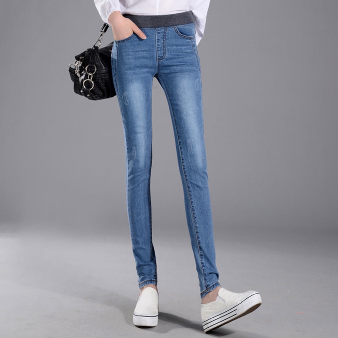 Nvppxv Women Jeans Pants Autumn High Waist Elastic Long Denim Trousers Walmart Com